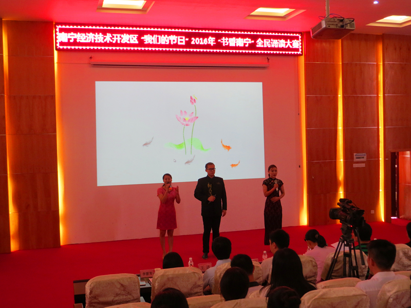 據(jù)了解,為大力培育和踐行社會主義核心價(jià)觀,傳承中華傳統(tǒng)節(jié)日和中華傳統(tǒng)國學(xué)文化,倡導(dǎo)全民閱讀,南寧市已連續(xù)多年舉辦“書香綠城”系列讀書活動(dòng)和經(jīng)典誦讀活動(dòng)。接到經(jīng)開區(qū)開展比賽的通知后,集團(tuán)領(lǐng)導(dǎo)高度重視,把該活動(dòng)作為推動(dòng)企業(yè)文化建設(shè)的一個(gè)有利契機(jī),積極組織人員參賽。集團(tuán)領(lǐng)導(dǎo)親自帶隊(duì),精心挑選了參賽作品,利用節(jié)假日的休息時(shí)間,加班加點(diǎn)進(jìn)行排演,逐字逐句地調(diào)整校正發(fā)音。為豐富表演形式,還讓集團(tuán)擅長制作PPT的職工結(jié)合誦讀的內(nèi)容制作了動(dòng)態(tài)PPT,使表演更精彩。
