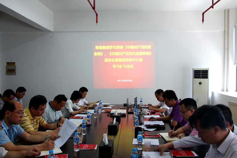 為進(jìn)一步加強(qiáng)廉政文化建設(shè),不斷提高黨員干部廉潔從業(yè)意識(shí),推進(jìn)廉潔從業(yè)教育工作,以黨風(fēng)廉潔建設(shè)新成效促進(jìn)綠港集團(tuán)健康發(fā)展,4月20日上午,綠港集團(tuán)黨委召開學(xué)習(xí)貫徹《中國(guó)共產(chǎn)黨問責(zé)條例》和《中國(guó)共產(chǎn)黨黨內(nèi)監(jiān)督條例》(以下簡(jiǎn)稱“兩部條例”)宣講報(bào)告會(huì)暨中心組學(xué)習(xí)擴(kuò)大會(huì)議,會(huì)議由綠港集團(tuán)黨組書記、董事長(zhǎng)楊東主持,經(jīng)開區(qū)紀(jì)工委派駐國(guó)有公司紀(jì)檢組組長(zhǎng)李云岳就“兩部條例”進(jìn)行了宣講,綠港集團(tuán)全體班子成員、集團(tuán)本部中層以上管理人員、子公司領(lǐng)導(dǎo)班子約50人參加會(huì)議。