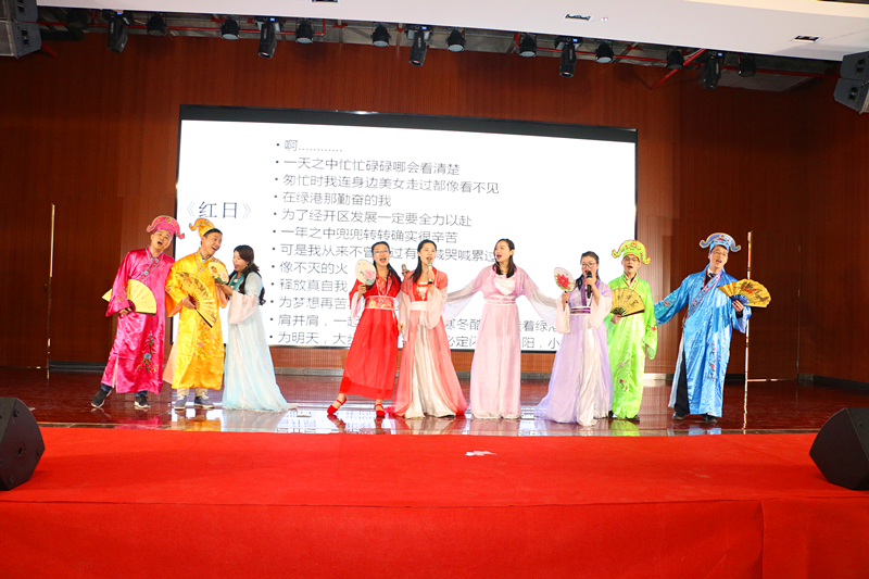 隨后,來自集團工程管理部林重胤以及嘉通公司潘青青甜蜜獻唱《告白氣球》,讓大家感受到了愛情的絲絲美好。嘉通公司的《夸夸咱公司》,用三句半的表演形式唱出了綠港集團濃濃的企業(yè)文化情愫,也展現(xiàn)了綠港員工積極、拼搏、向上的精神?!段乙鼐G港》、《聲臨其境》、《好運來》、《愛》、《好嗨喲》等多個節(jié)目在觀眾的熱情掌聲中聯(lián)袂奉上一場精彩演出,整個活動歌聲笑聲、熱烈的掌聲匯成了歡樂的海洋。集團營銷管理中心的《四小天王齊賀歲》以及集團計劃運營部、紀(jì)檢監(jiān)察審計部、安全監(jiān)督部聯(lián)合帶來的《蒙面唱將猜猜猜》將活動推向高潮,現(xiàn)場掌聲不斷。快板《綠港贊歌》道出了綠港集團成立五載,綠港人用智慧和汗水所取得的成效。最后,集團領(lǐng)導(dǎo)班子壓軸出場,帶來詩歌朗誦《相信未來》,贏得陣陣掌聲,讓大家堅定了信心、鼓足了干勁,對美好生活更加熱愛和向往。
