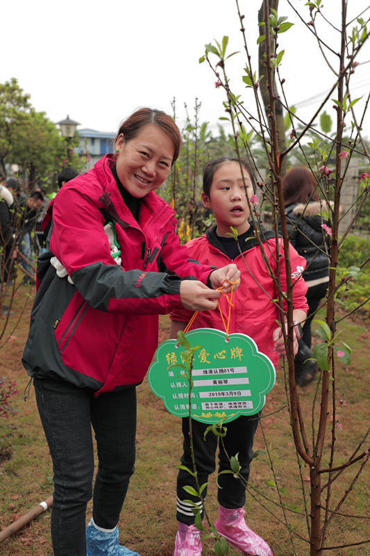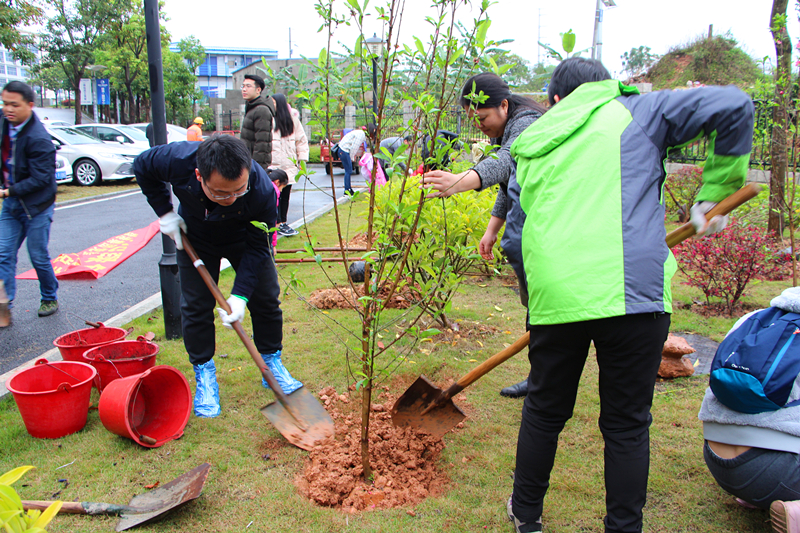 當(dāng)天,綠港集團(tuán)還舉行了植樹護(hù)綠活動(dòng)。在細(xì)雨紛飛中,家長(zhǎng)和孩子們一起動(dòng)手,分工協(xié)作。大家栽得認(rèn)真,干得賣力,揮鍬鏟土、挖坑、栽樹、蓋土、澆水,各個(gè)環(huán)節(jié)銜接有序,配合默契。整個(gè)植樹活動(dòng)現(xiàn)場(chǎng)熱火朝天,歡聲笑語(yǔ)不絕于耳。經(jīng)過一個(gè)多小時(shí)的揮汗奮戰(zhàn),上百棵小樹苗整齊的“站”在了綠港·國(guó)際中心桃樹林中。放眼望去,樹苗迎風(fēng)挺立、搖曳生姿,大家看著這一片自己親手種下的樹苗,無(wú)不露出幸福的笑容,紛紛與小樹苗合影。綠港集團(tuán)下屬榮鑫公司副總經(jīng)理唐欽月表示:“植樹造林是一項(xiàng)利于當(dāng)代、造福子孫的偉大工程。綠港集團(tuán)成立五年來(lái),每年都積極組織員工開展義務(wù)植樹造林活動(dòng)。今天我們帶上孩子一起參加義務(wù)植樹活動(dòng),不僅增強(qiáng)了職工們生態(tài)環(huán)境保護(hù)的責(zé)任感,也給孩子們樹立了關(guān)心、愛護(hù)以及主動(dòng)參與家園建設(shè)的意識(shí)和榜樣?!?nbsp;
