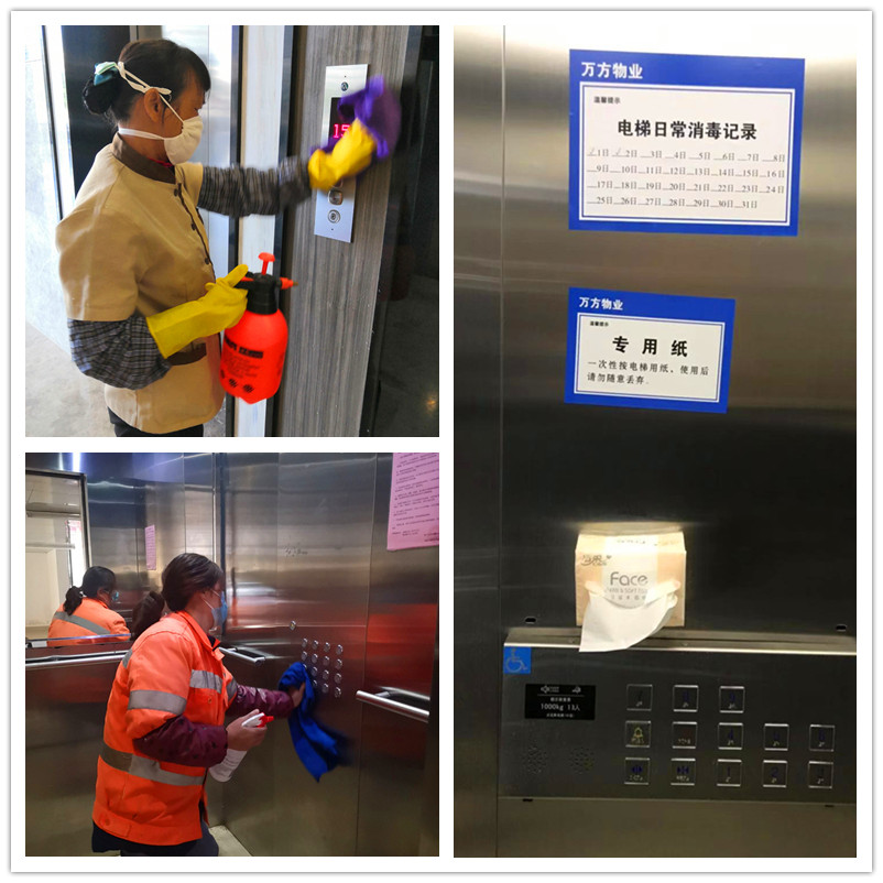 防疫物資到位后,萬方公司于1月30日及時安排人員將物資下發(fā)到各服務(wù)項目,同時在接管的綠港·國際中心、麗匯工業(yè)園、創(chuàng)意產(chǎn)業(yè)園、金凱工業(yè)園、銀凱孵化園、宏象工業(yè)園、現(xiàn)代工業(yè)園、吳圩新港家園等10余個項目全面開展疫情防控工作。由各項目主任帶頭領(lǐng)導(dǎo),多措并舉防控疫情。首先,對公廁、下水道、單元樓道、垃圾桶、綠植等容易滋生病菌的場所進(jìn)行消毒,重點對人員接觸頻繁的電梯、公共通道的門把手、開關(guān)、按鍵、健身器材等位置進(jìn)行每日1-2次的消毒滅菌工作。其次,嚴(yán)格落實園區(qū)進(jìn)出人員及車輛的管理和登記,共在各園區(qū)設(shè)置定點體溫檢測10處,嚴(yán)格開展入園人員體溫檢測,并進(jìn)行體溫異常人員登記,除現(xiàn)場進(jìn)行體溫檢測外,還在萬方公眾號小程序上推送各種防疫工作溫馨提示,提醒業(yè)主注意防疫措施并配合體溫監(jiān)測。再次,設(shè)置廢棄口罩回收點30個(每個園區(qū)視項目情況配2-3個點),回收廢棄口罩,防止病毒逸散。最后,深入園區(qū),做好業(yè)主和群眾的疫情防治宣傳,在各園區(qū)共懸掛疫情防控宣傳橫幅50條,將防護(hù)知識傳播到各家各戶,降低恐慌,為共同保障園區(qū)環(huán)境奠定良好的群眾基礎(chǔ)。