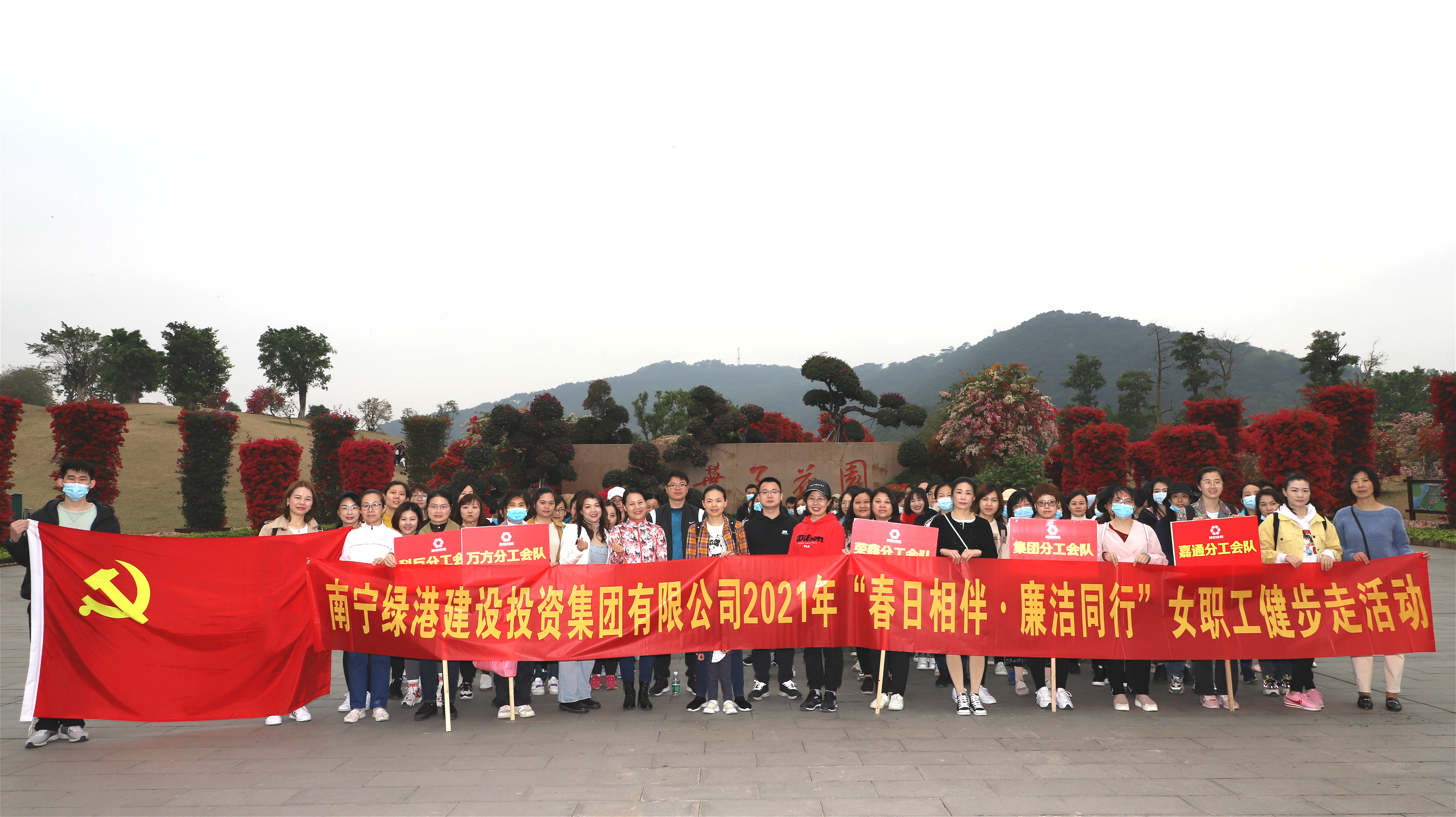 陽(yáng)春三月,春意盎然。為慶祝第111個(gè)“三八”國(guó)際婦女節(jié),充分展示婦女職工積極進(jìn)取、昂揚(yáng)向上的巾幗風(fēng)采,弘揚(yáng)“綠色運(yùn)動(dòng)”健康理念,倡導(dǎo)健康文明生活方式,3月8日,綠港集團(tuán)黨委、綠港集團(tuán)工會(huì)、綠港集團(tuán)女工委在南寧青秀山共同舉辦“春日相伴·廉潔同行”健步走活動(dòng)。集團(tuán)公司黨委書(shū)記、董事長(zhǎng)龔國(guó)強(qiáng),集團(tuán)公司黨委副書(shū)記、總經(jīng)理鄧?yán)^慧,集團(tuán)公司黨委委員、副總經(jīng)理陸羿冰,集團(tuán)公司黨委委員、副總經(jīng)理、工會(huì)主席黃麗琴,集團(tuán)公司財(cái)務(wù)總監(jiān)關(guān)月娥出席活動(dòng)。綠港集團(tuán)全體管理崗位女職工及其親屬約130人參加。