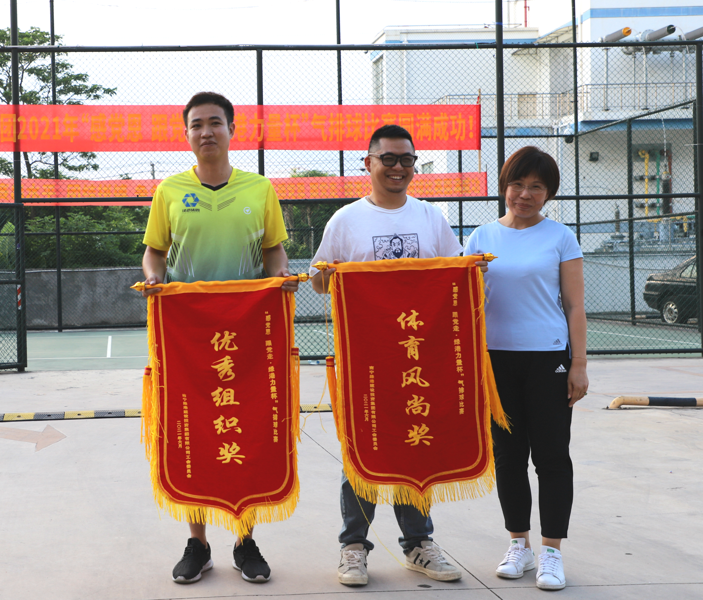 綠港集團(tuán)財務(wù)總監(jiān)關(guān)月娥為獲得體育風(fēng)尚獎、優(yōu)秀組織獎隊伍頒獎