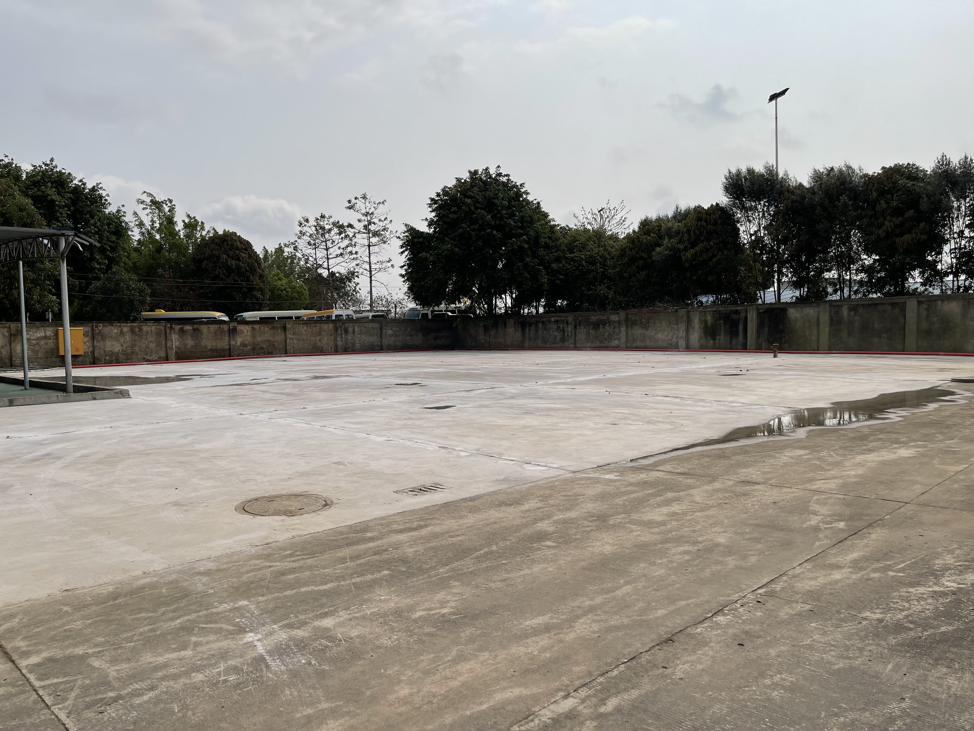19日凌晨1時17分,最后一車混凝土澆筑完成,車輛和檢疫消殺設備放置處完成施工,聯(lián)檢樓及大院改造工程基礎(chǔ)工程基本完成!