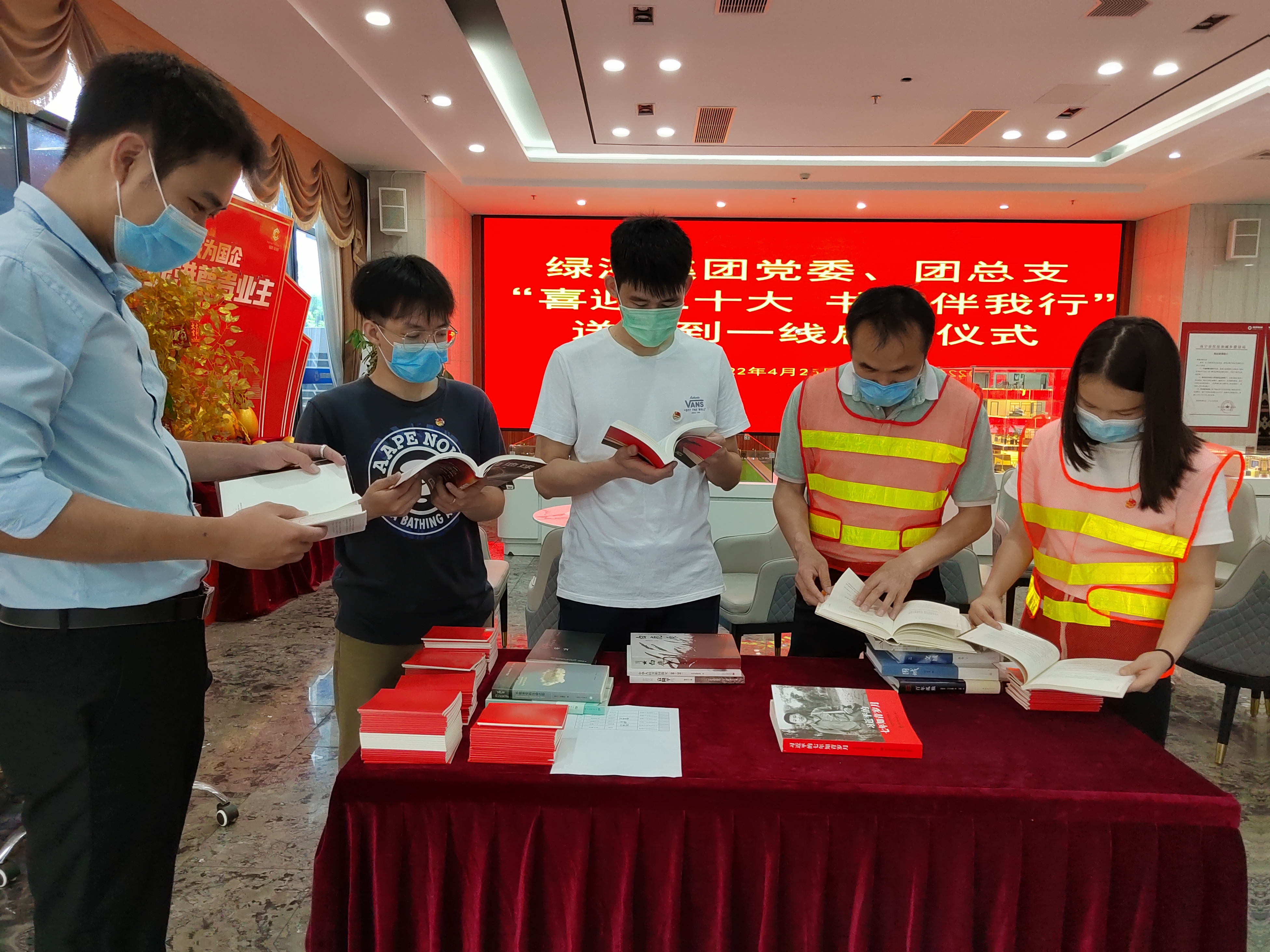 在第27個世界讀書日暨首屆全民閱讀大會舉辦之際,為營造濃厚的讀書氛圍,綠港集團黨委、團總支以“喜迎二十大 書香伴我行”為主題,組織黨員代表及青年團員開展送書到項目一線的讀書活動。