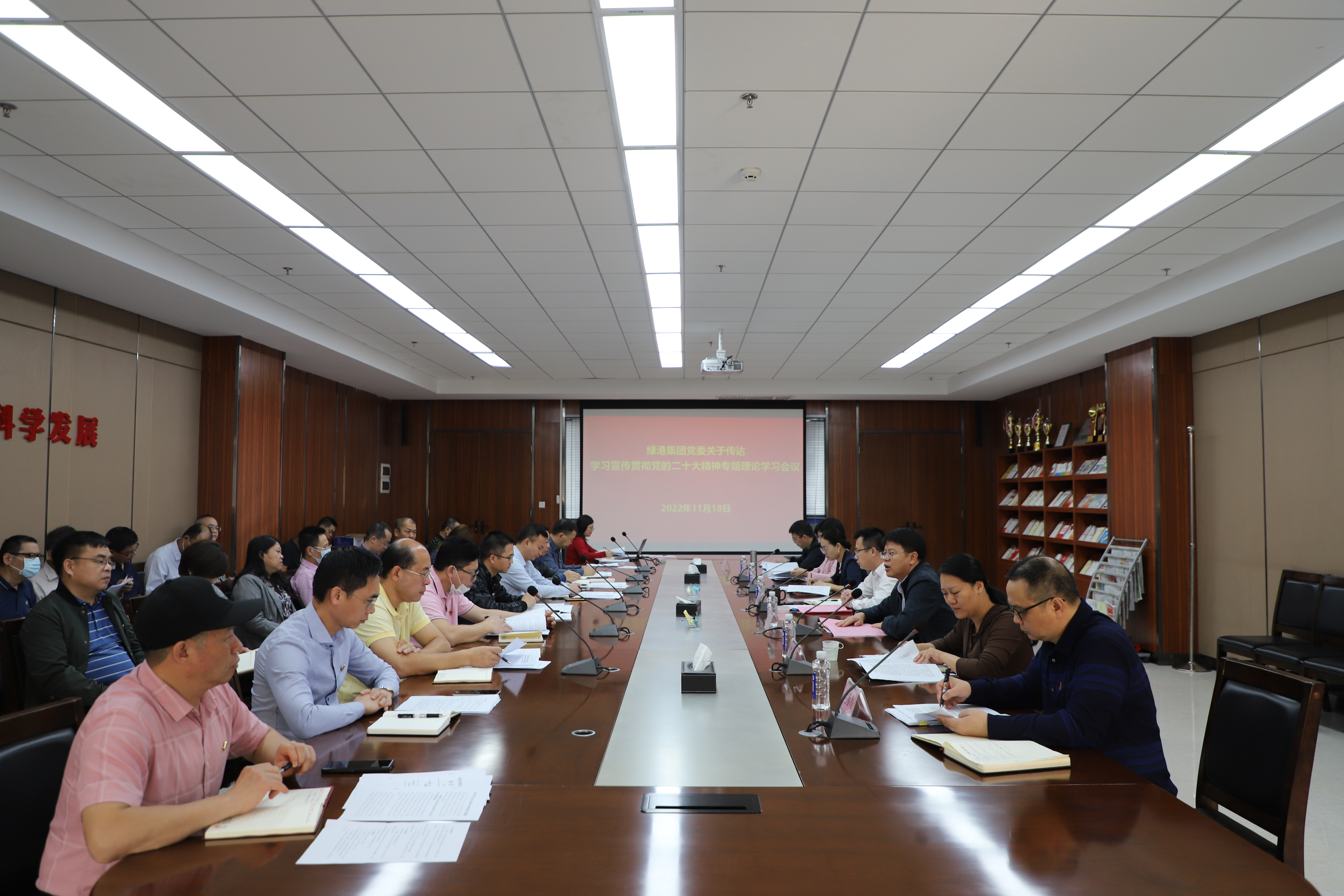 為深入學(xué)習(xí)宣傳貫徹黨的二十大精神,進(jìn)一步學(xué)習(xí)領(lǐng)會(huì)習(xí)近平總書(shū)記參加廣西代表團(tuán)討論時(shí)的重要講話精神和視察廣西“4·27”重要講話精神和對(duì)廣西工作系列重要指示要求,組織開(kāi)展好綠港集團(tuán)黨的二十大精神宣講工作,近日,綠港集團(tuán)黨委組織召開(kāi)黨的二十大精神專題理論學(xué)習(xí)會(huì),集團(tuán)領(lǐng)導(dǎo)班子及各部門、各子公司負(fù)責(zé)人參與會(huì)議,會(huì)議由集團(tuán)黨委書(shū)記、董事長(zhǎng)龔國(guó)強(qiáng)主持。