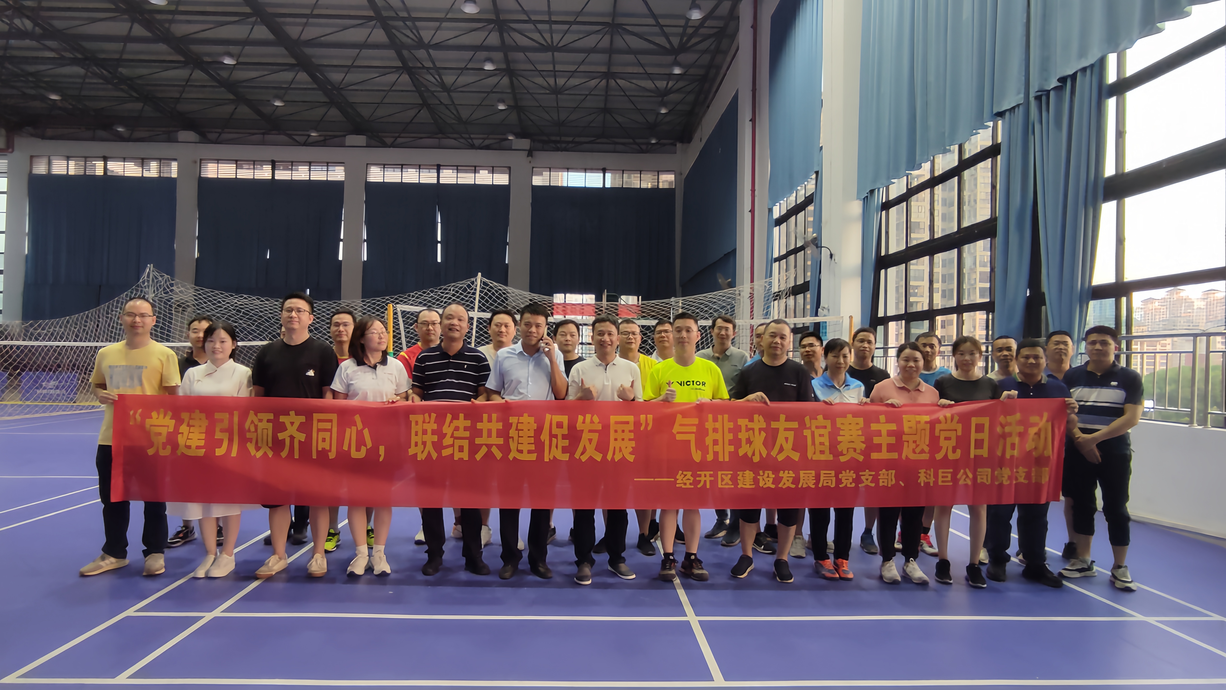 “今晚的友誼賽打得真是酣暢淋漓!”隊(duì)員們賽后仍然意猶未盡。5月30日,為進(jìn)一步增強(qiáng)黨支部之間的交流,科巨公司黨支部與經(jīng)開區(qū)建設(shè)發(fā)展局黨支部在綠港·歡樂(lè)里魚悅體育館開展了一場(chǎng)熱情洋溢、精彩紛呈的“黨建引領(lǐng)齊同心,聯(lián)結(jié)共建促發(fā)展”氣排球友誼賽主題黨日活動(dòng),以黨建為契機(jī),揮灑運(yùn)動(dòng)汗水,點(diǎn)燃夏日激情,強(qiáng)化政企溝通,增進(jìn)政企共識(shí),攜手共建經(jīng)開新篇章!