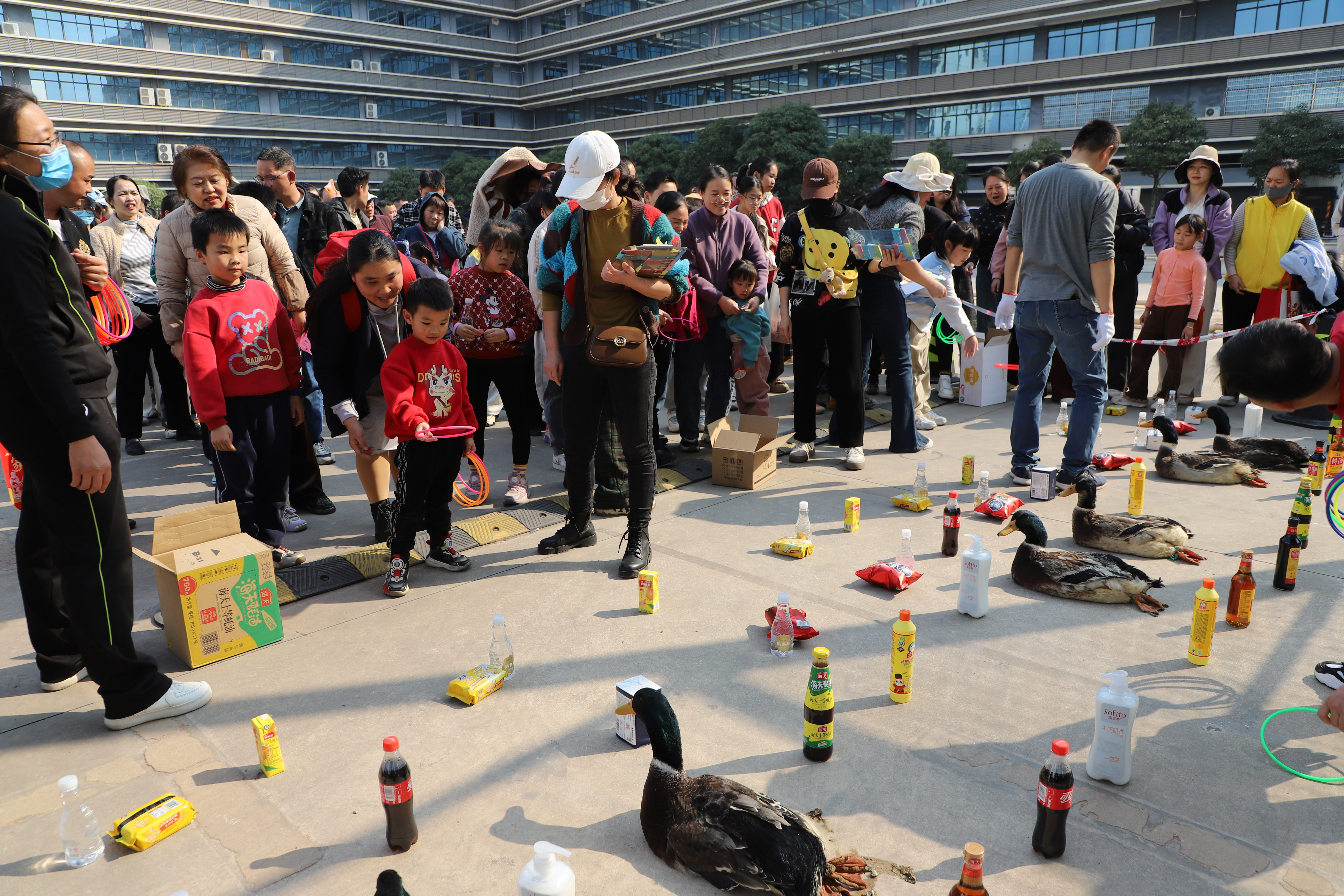 本次游園活動(dòng)設(shè)8個(gè)趣味游戲,“套圈”“蒙眼踏步”“投壺”“一鼓作氣”“對(duì)戰(zhàn)疊疊樂”“幸運(yùn)鏟錢手”“頭頂投籃”“來打我鴨”豐富多樣的趣味游戲讓大家樂在其中,踴躍參與,歡笑聲此起彼伏,現(xiàn)場(chǎng)氣氛十分活躍。